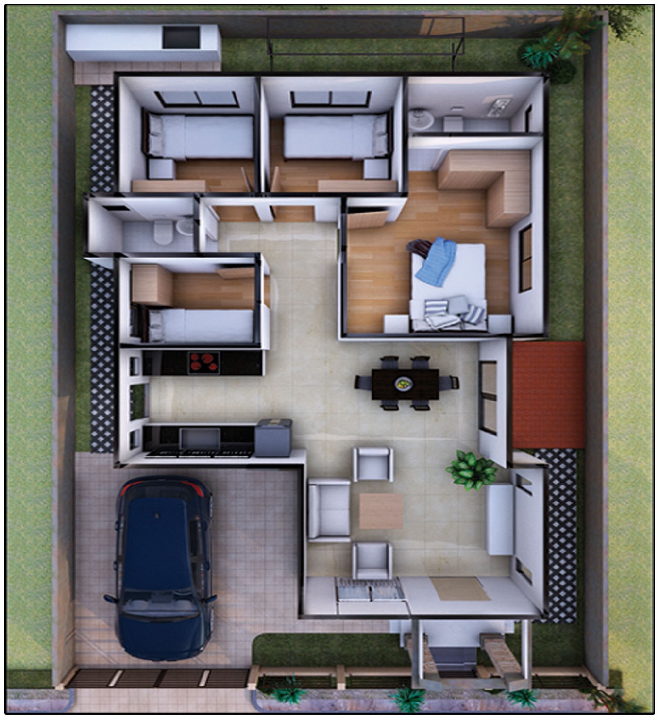 A four-room bungalow model unit that opens directly into the living room and kitchen area that will have easy access to outdoor spaces. It also has a spacious kitchen for those who love to cook.