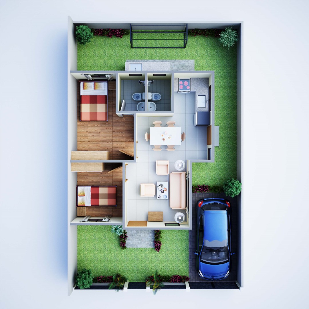 Bungalow housing unit with 2 bedrooms and 2 toilets and bath.